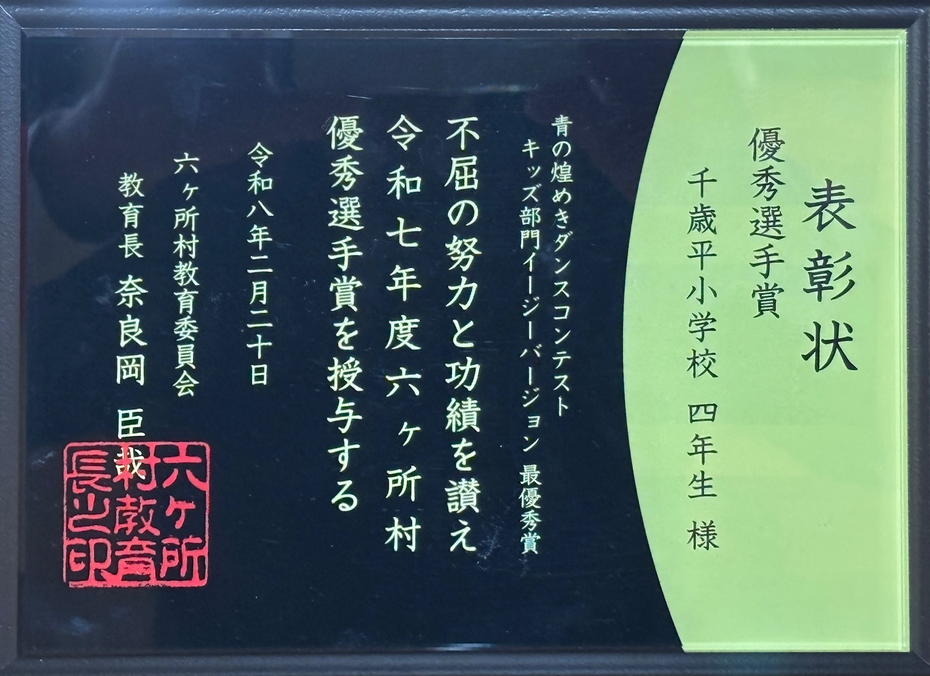 2月20日(金),文化交流プラザスワニーにおいて「令和7年度六ヶ所村教育奨励賞・スポーツ賞」の授賞式が行われました。本校からは,教育奨励賞(個人の部)受賞者5名(2年1名,3年,1名,4年3名)とスポーツ賞の優秀選手賞(団体)受賞の4学年11名全員が出席し,教育長より賞状などをいただきました。ちなみにですが,4学年担任も,別件でスポーツ奨励賞を受賞しており,同会場で賞状などをいただきました。これまで努力した結果,力を発揮した結果の賜物であり,本校からたくさん選出されたことは,この上ない喜びで嬉しい限りです。