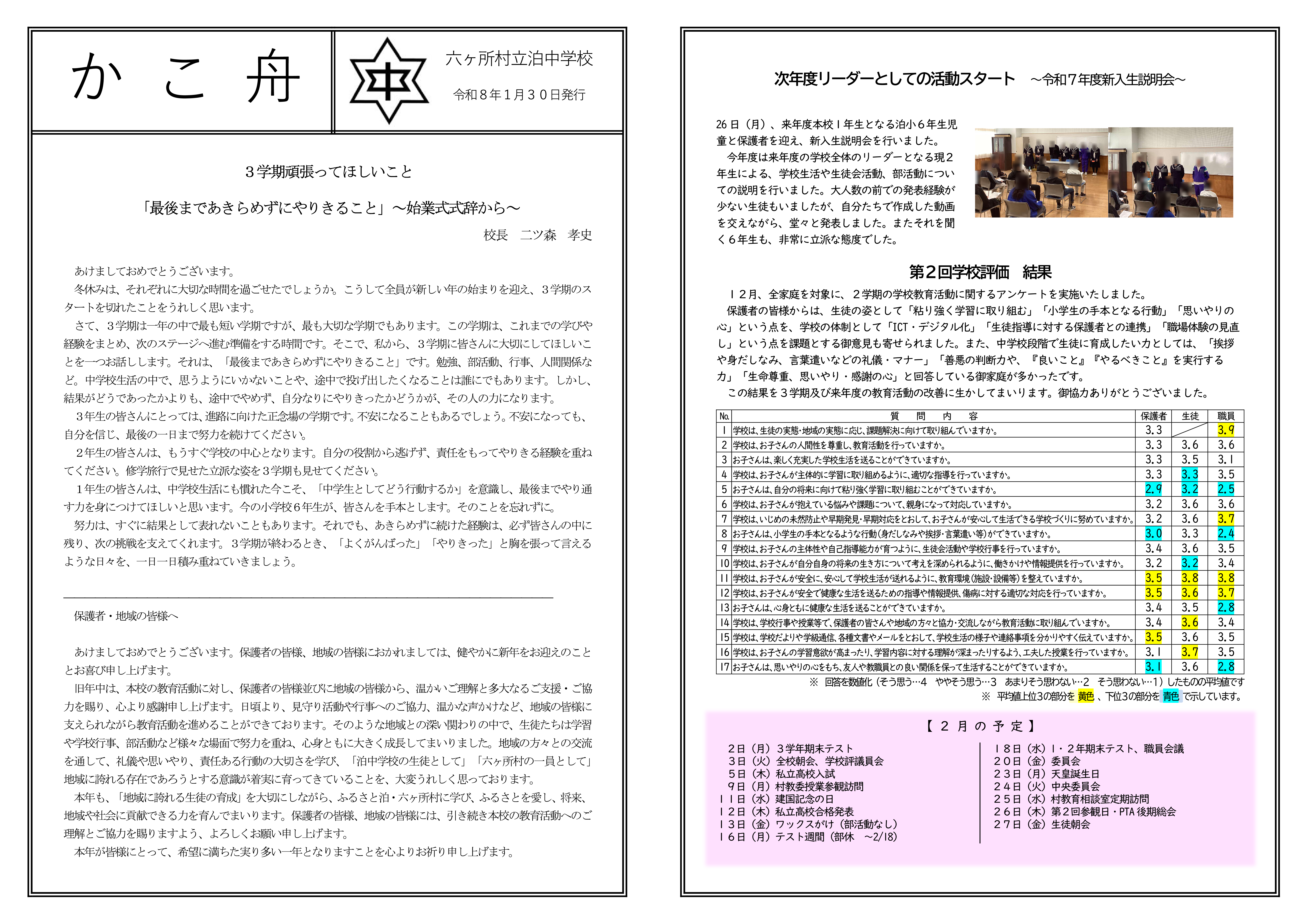令和8年度 1月号を発行しました。