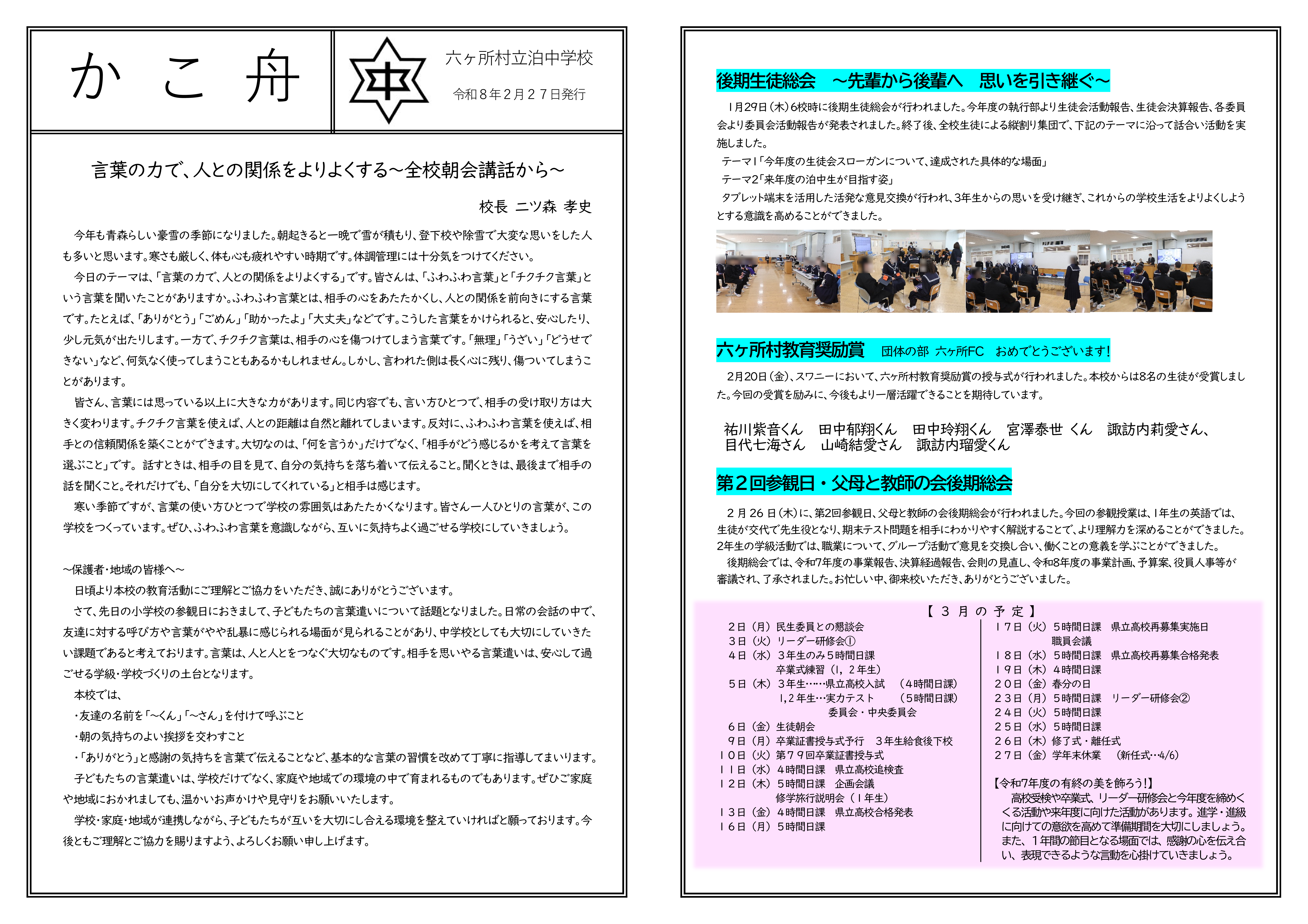 令和8年度 2月号を発行しました。